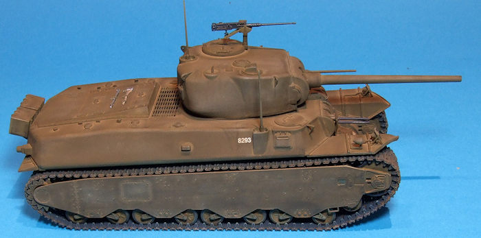 The DS tracks were assembled into two sets and painted with a very dark gray, then weathered with a brown oil wash. These fit over the road wheels and sprockets with no problems.