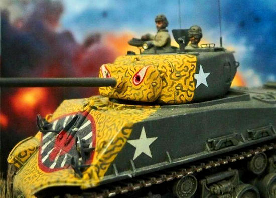 one of the famous “tiger face” Shermans of Company C, 89th Tank Battalion, U.S.