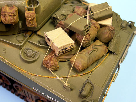 some tan thread over the equipment on the rear deck to simulate the tank crew’s