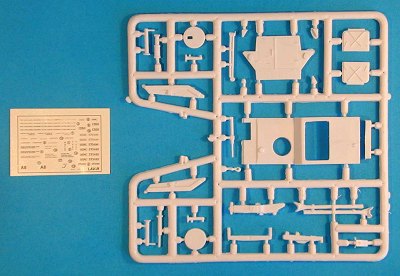 The instruction sheet is a folded A4 sheet, giving 4 pages in total. The front page shows the parts layout on the sprues; the rear page contains monochrome profiles displaying the colours and markings provided; and the centre fold-out contains six neat and clear exploded diagrams for kit assembly. Assembly steps are not numbered, but the sequence is quite obvious. The instruction sheet recommends the use of fine wire for details such as rear view mirror mounting brackets and various hatch or grab handles.