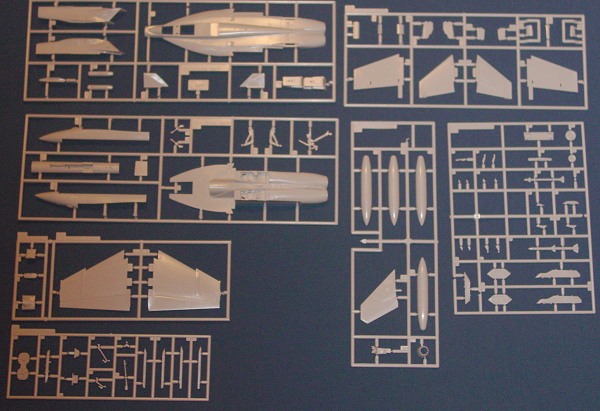 Hasegawa has an excellent reputation for high-quality, well-engineered kits. This one is no exception. What you get is 120 parts, the majority is molded in the standard Hasegawa light gray, except for the clear parts and 4 poly-caps. Poly caps?! You betcha, the horizontal tail moves! If you've built any of Hasegawa's earlier Hornets, then you'll remember how annoying assembly is since the tail plane is molded onto the lower fuselage, leaving little room to clean up the seam between them and the wings. I like this option, now you'll have easier assembly along with some moving parts. Hopefully it will work out well. You also get some external stores in the form of two AIM-120 AMRAAMs, 2 AIM-9X Sidewinders 4 fuel tanks, 2 dual bomb racks and 2 sensor pods, which is a little surprising since Hasegawa has been leaving their kits without weapons for years, hoping you'll buy their separate weapons sets.
