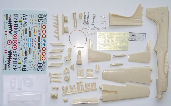 51 resin parts, 10 metal parts, 37 P/E parts, a clear vac canopy. Highly detailed model, for average modeller |
