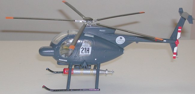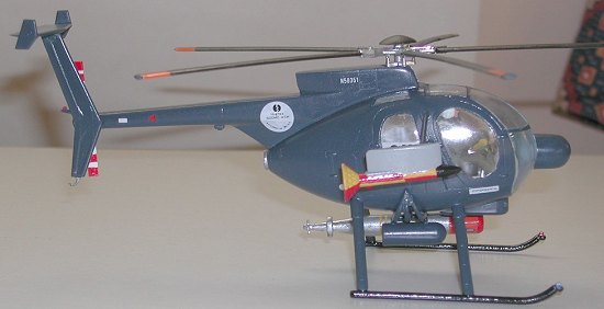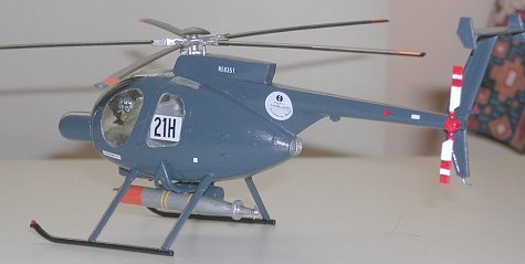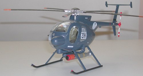 While browsing through a hobby shop on holiday (like you do) I came across a range of canopy masks and had a look at them. I had always dismissed these as a waste of money as scotch tape is a lot cheaper and lasts longer. However I saw one for the MD-500 and decided to give it a go. The parts were easy to lift off the backing and worked well. The ones for the main glazing conformed to all the curves very well indeed. Every thing was now ready for the paint.