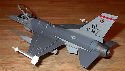 offering of the F-16 depicts a YF-16 prototype. The kit is molded in white or