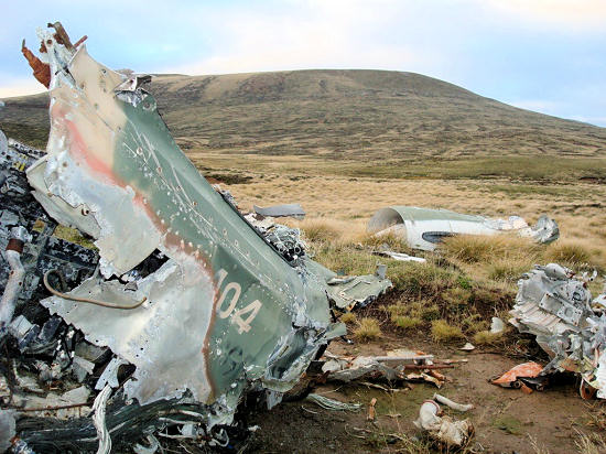 Apparently, he was hit by a machine gun of the Argentine Army while flying low
