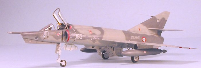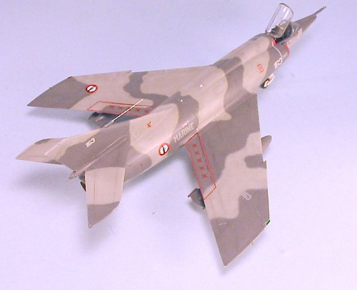 A bad kit that makes into a nice model (with “some modeling ability required”) of a very interesting airplane that more than fulfilled its original specifications and went a very long way to making the Aeronavale one of the best naval air arms. If you like modern jets, the kit can be found for a very cheap price, and you’ll have a worthwhile addition to your collection. I have the very-similar Super-Étendard in the process of being built, so if I get a Mirage 2000 and a Rafale, I will have done all the Dassault jets except for the original Ouragan.