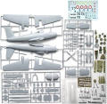 Except the very old 1/50 scale basic kit from French manufacturer Heller, aficionados of this lovely bird have long awaited a Dynavector kit, that never arrived on the shelves. Once again the courageous French artisan Fonderie Miniature tackle the subject. In the usual cardboard box you’ll find 192 parts; 23 in resin, 43 in white metal, 12 in vac-form (doubled “just in case if..”, 114 in plastic. The plastic part surface is better than the former models, though I notice nine sink marks on gear doors, top fuselage antenna and back of propellers and some engraved line that “swing” in some area around the karman fuselage.
