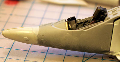 So, my solution was to cut the Airfix nose vertically, starting at the