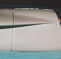 I painted the flaps and slats in both Humbrol Insignia Red and AeroMaster acrylic FS36118, Gunship Grey. The former colour was used on the inner surface of the slats, the rear flap, the inner surface of the wing glove and it’s corresponding fuselage surface, the inner surface of the wing where the slats and flaps retract and finally the inner flap extension – both upper and lower surfaces. The leading edge of the slats is painted flat black to depict the de–icing strip.
