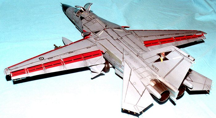 This kit has taken as long to build as the original TFX project took to get off the ground. I daresay with the same degree of language as well! I’ve enjoyed the project despite some basic inaccuracies –most being ignored! It’s the three sets of decals and four coats of paint that have almost cost me my sanity! Aussie Decals Kits A48010 and A48022 used |