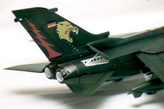 The next stage of the model was the spraying. I had managed to obtain a set of decals, which contained an ECR (Electronic Combat Reconnaissance) Tornado from the Jabo Geschwader 321 squadron, based at Lechfeld. This aircraft first appeared at the Cambria Tigermeet in 1994 along with two others from the same squadron. I managed to obtain some information from Gert Weckx, who looks after the SIG on NATO Tigers. For anyone interested in these fabulous aircraft and their squadrons I would direct you to: