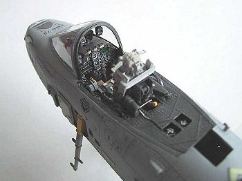 seat of the kit’s Aces II seat is molded integral with the cockpit floor and