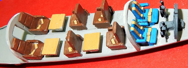 fuselage floor and bulkheads were trimmed to fit into the fuselage halves. Seats
