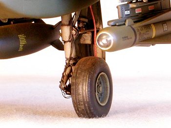 The landing gear seems correct, though many details have been omitted. Ballast will undoubtedly be necessary to prevent the completed model from assuming a ‘tail dragger’ pose, though a clear tail prop is provided as aid and comfort to forgetful modelers. A ‘Pave Penny’ pod with pylon is included, but the unsophisticated molding is less than convincing.
