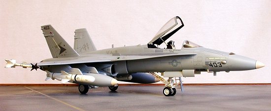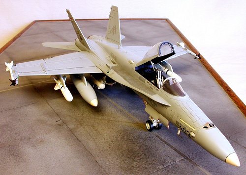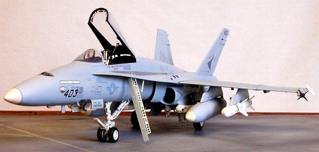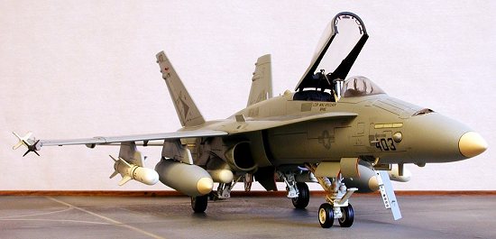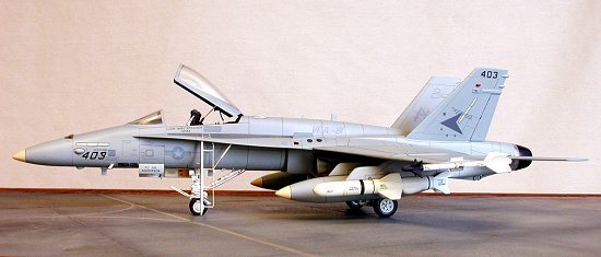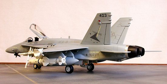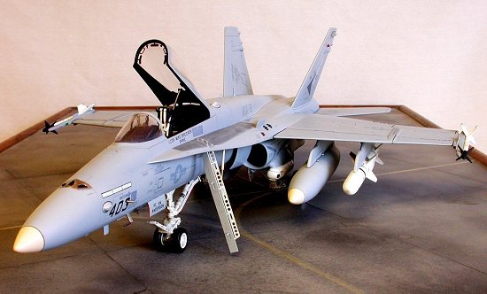 As Monogram kits go, the F/A-18 is about average. Poor fit will hamper the assembly though the cockpit, landing gear, and overall lines provide pleasing relief. While this model cannot be accused of shake-and-bake status accorded to the Hasegawa Hornet, neither does it command the outrageous $50+ retail price.