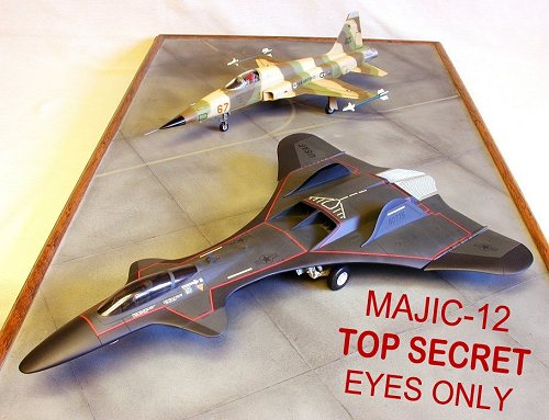 Captain Frank Bach (USN), chairman of the Majestic-12 advisory board, discovered and dusted off the plans for this aircraft just as the bureaucratic droids and political pantywaists at the Pentagon sheepishly admitted their lack of a comprehensive or cohesive strategy for dealing with this crisis. With Congress loath to appropriate or authorize funds to build this aircraft, Captain Bach, operating under emergency National Command Authority, secured funding through other less-conventional avenues, specifically a coalition of the John Birch Society, the National Rifle Association, and the Boy Scouts of America.