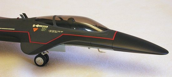 After sealing the decals with Testor’s Dullcote, Liquitex black watercolor was used as a wash to highlight the movable control surfaces and weapons bay doors. A final light coat of flat lacquer was applied to seal the wash then the masks were removed from the canopy and lights. Time to kick the tires and light the fires…