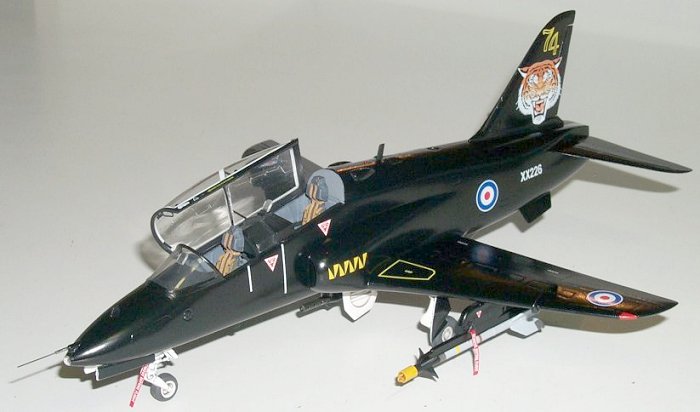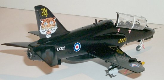Decal options are provided for the RAF Red Arrows Hawk aircraft, with enough serials to construct any of the aircraft in the team. The decals are crisply printed and thin but lacking in detail. However I had purchased an aftermarket sheet by Mike Grant Decals so the kit decals went into the decal bank. Mike produces superb decals using the Alps printer system. I purchased two sheets (1:72/1:48) of a RAF 74 Squadron Hawk in full 1992 Tiger Meet livery. 74 Squadron’s Hawks are black overall with the squadron badge on the tail fin. The “re-dressing” of this Hawk for Tiger Meet replaces the squadron badge with a tigers head covering almost all of the tail.