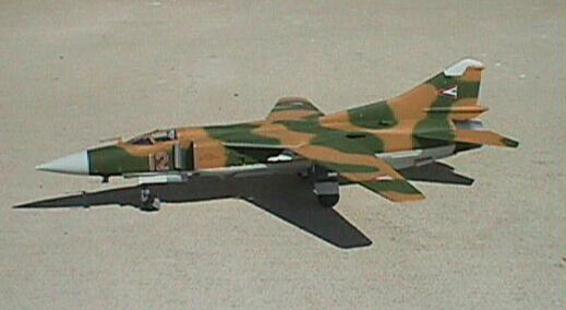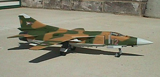 Overall, Im quite pleased with the finished product. The kit went together well, and with a bit of research, and some modifications, can be built into a nice model. As a footnote, before assembling this kit, I cloned the intake ramps, and belly gun pod, in resin, for future use in doing some MiG-23BNs. The "BN" looks very much like a MiG-27. If you use the MiG-27 kit, and add MiG-23 splitter plates, and gun pack, youve just cleared the biggest obstacles in doing an accurate MiG-23BN. Contrary to what you may have seen from kit, and decal makers, the only export customer of the MiG-27 is India. All others youve seen represented as a MiG-27, are actually MiG-23BNs! Again, the MiG23/27 in action book is a great help in updating either kit.