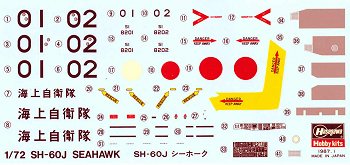 The Seahawk is a twin-engine helicopter. It is used for anti-submarine warfare, search and rescue, drug interdiction, anti-ship warfare, cargo lift, and special operations. The Navy's SH-60B Seahawk is an airborne platform based aboard cruisers, destroyers, and frigates and deploys sonobouys (sonic detectors) and torpedoes in an anti-submarine role. The SH-60J is the Japanese version of the SH-60B, differences are no IR jammers, no data link antenna and the some sensors on the nose are missing.