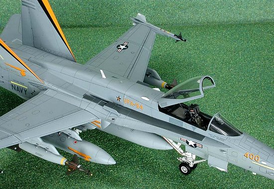 The only significant issue I had with the Cutting Edge set is that the canopy insert will not fit without removing two small sections from the kit provided clear canopy. I decided to just use the kit parts since I was already frustrated by the decals and also envisioned a tough time getting the canopy to open in the correct position. The landing gear, doors, exhaust nozzles, pylons, weapons, and drop tanks were all installed with absolutely no problems. After a final topcoat of Testors Dullcote to provide the final finish, all masking was removed and the final antennae were mounted in place to finish off the model.