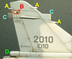 A. The improved countermeasures unit ICMS Mk 2 has three radar detectors on the vertical stab. I reworked the three antennas with stretched sprues.
