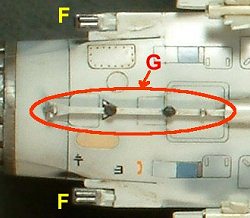 F. The Matra Spirale chaff dispensers fairing on both sides of the rear fuselage were from the kit parts NO.46 with slightly detailing.