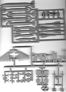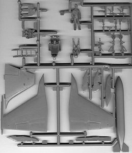 There’s also a new weapons load, which seems fairly pointless to me. How often have you seen an F-5 aggressor loaded with ANYTHING (OK, OK the (very) occasional tank and something on the wing tips), let alone Mavericks, 1000lb bombs or gun pods. Monogram did it with both their F-5E and F aggressors and I guess it’s just something else these people have copied. But it does mean there are two launch rails of indeterminate parentage loose in the box molded in a different (white) plastic. I have worked out (from the box art) that they are intended for the Mavericks, but, like the Mavericks, are destined to meet the bin. Very soon.