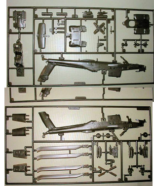 Although not mentioned on the box, the kit has rotating main rotors, tail rotors, main cannon and stabilator. The main rotor spins very smoothly once assembled, a tribute to the good engineering of this part.
