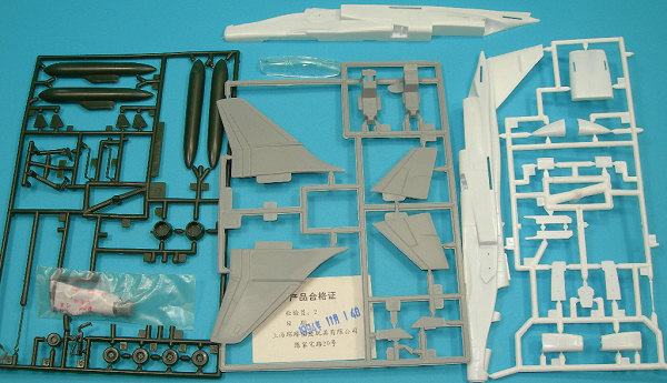 This kit was produced for the Chinese home market as the instruction sheet is only in that language. Also in concert with this is the supplied tube of glue nicely packaged in its own bag. The instructions and detailed decal placement guides are well drawn and easy to follow but with the detail painting notes in Chinese; good luck!