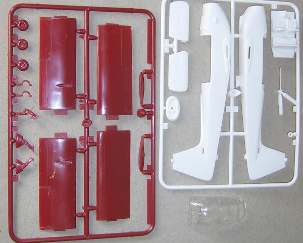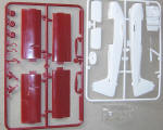 colours plus a clear one-piece canopy. In red plastic we have the wings,