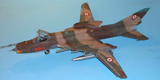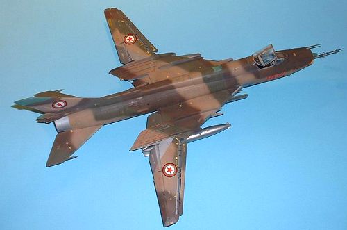 The Fitter K is a derivative from the Sukhoi Su 7. That one was a short ranged interceptor which evolved into a ground attack plane. In the 70’s, obeying the trends of that time, Sukhoi gave a variable geometry wing to the Su 7 and gave birth to the Su 17/20/22 family. Libya once thought VG wings gave the Fitter what it takes to be a fighter, but two VF-41 crews and their Tomcats quickly reminded the pilots the Cat was not to be messed with, and that Mediterranean waters can be pretty cold at that time of the year.