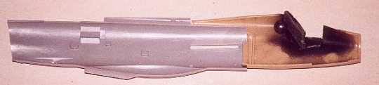 The airbrakes were a problem. I had decided to display them closed, as most Lightning have them in this position on the ground. The trouble is, they refuse to be flush with the rest of the fuselage : the port one is too thin, and the starboard one too thick ! Putty and sanding on one side, filing and sanding on the other, and that was that.