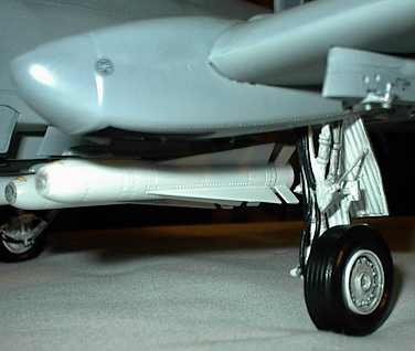 The Two Bob’s decals worked wonderfully. I used my method of sandwiching the decals between Future Floor Polish and it worked fine. Pylon and weapons decals were taken from the kit sheet. I know others have mentioned the fuzziness of these stencils but they worked for me. While putting the various stencils on the weapons, I noticed that Trumpeter has a few comedians on staff because the NO LIFT decals on the Mavericks actually say NO LIFE! The decals settled down with no fussing.