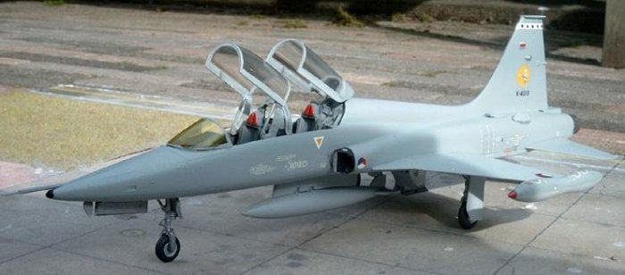 Until now there is not a good model of a F-5A or F-5B in 1/48 scale. Begining this year Sword came with a nice T-38 Talon while Fujimi had already a poor F-5B version. As the Sword Talon had a good resin cockpit I decided to rebuild the two kits to a Dutch NF-5B.