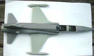 After this the most of the work was done. Only the speed brakes underneath the fuselage were larger for a F-5 and so I modified this. The undercarriage was taken from the Fujimi kit. The Talon has a different nose wheel so the kit version was used. The NF-5B is build as a clean version with only a centerline tank.