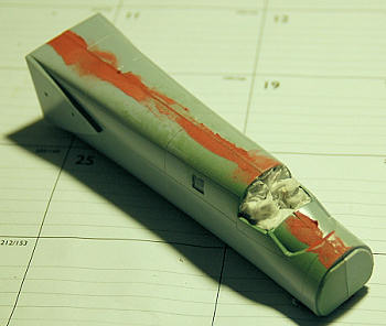 Test fitting showed that the mating of the fore and aft were not going to be simple, so I skipped a few steps in the instructions and attached them together. Even with sanding, this joint (ingeniously placed by the model creator where and actual joint line is on the real aircraft) was going to need some serious PSR.