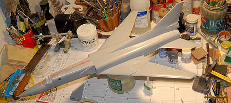 I sprayed the entire craft with a new hybrid airbrush, the Badger 3155, and I must say, I was impressed. You can go from a tiny panel line to a whole wing panel with the flick of your finger ! (Thanks Bear-Air!)