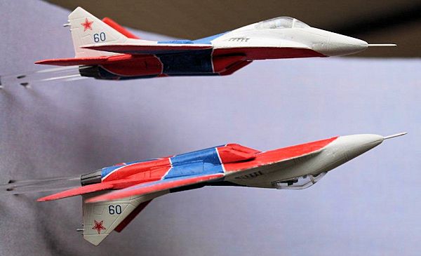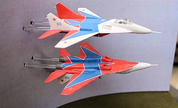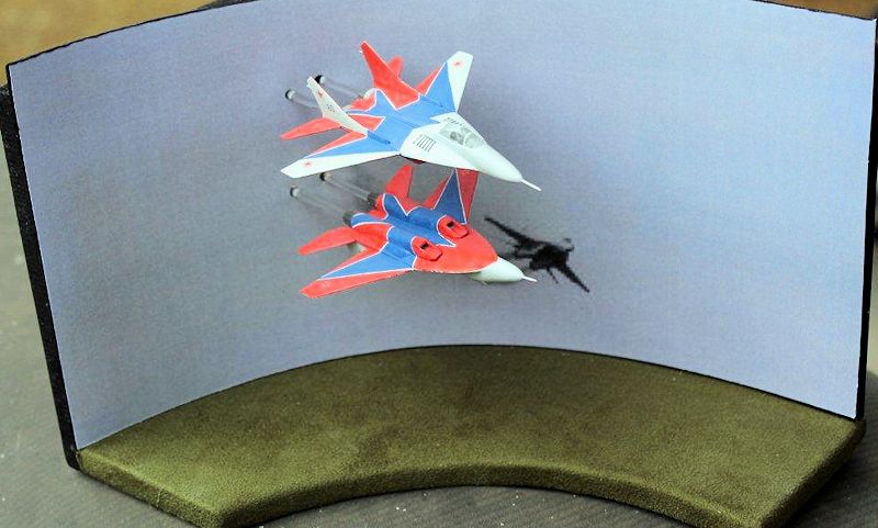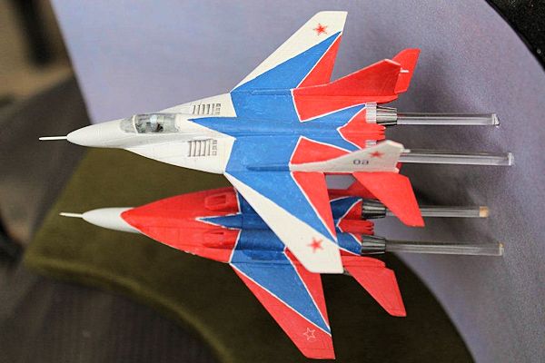 The USSR had (at least) two aerobatic / precision flying teams – the Russian Knights who flew FLANKERS, and the Swifts who flew FULCRUMS. I had an idea for a different diorama. And when I saw a roll of 0.4mm-wide tape in LHS, I realised that, with this stuff, I could execute my idea. Confidently, I began to gather the rest of the items to do it. It had to be done in 1/144-scale or else it’d be too big to display in my home, and I elected the FULCRUMS because they were available in the right scale, the livery looked easier, and it required fewer colours.
