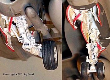 The Landing gear is a thing of beauty, its just to bad that you have to paint it white, makes it kind of hard to weather but more on that later. The main gear and the nose gear are metal and clean up extremely easily leaving a highly detailed addition to your kit. The gear doors have a lot of ejector pin marks but they clean up very easily. All I added to the wheel wells was some home made “Remove Before Flight” ribbons and dry-brushed in some dirt for the final touch. The gear was painted white first then pre shaded dark grey followed by another coat of white to get the shadow effects.