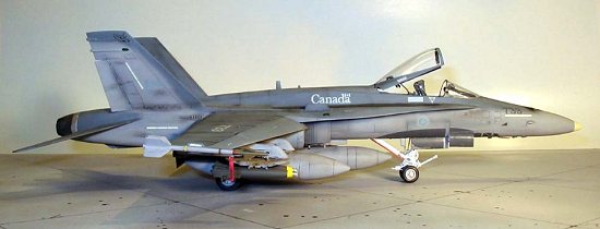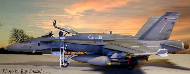 The pride and joy of Canada’s Air Command fighter pilots, the CF-18 provides air-to-air interception and air-to ground support to the army. The CF-18 was acquired in 1982 to replace the CF-104, CF-101 and CF-5. With the addition of precision-guided munitions capability, the CF-18 will serve into the next century. The first CF-18 was rolled out on 28 July 1982 and has proven to be ideal for the Canadian Forces. The Aircraft is a dream to fly, according to its pilots, and it has proven up to its task in performing its demanding dual role as an interceptor and ground attack fighter. 138 CF-18s were bought for the Air Force with the first one arriving at CFB Cold Lake in the fall of 1982. With its combination of advanced flight controls and powerful and reliable engines, the Hornet is equally comfortable at high or low altitudes. The Hornet is a classic "turn and burn" weapons delivery platform. McDonnell Douglas designed the Aircraft as a multi-role fighter, which means it excels at attacking both ground and air threats. A CF-18 Hornet gets all the take-off power it needs from two General Electric F404-GE-400 engines, each producing 7,299 kg of thrust. The CF-18 Hornet can carry Sidewinder and Sparrow missiles as an air defence fighter or, 17,000 pounds of ordnance as a strike Aircraft. (Editor's note: the Hornet is actually designated CF-188, but almost no one uses that term and it is mostly called either the CF-18 or the Hornet.)