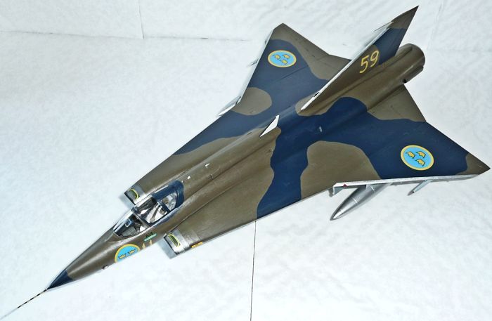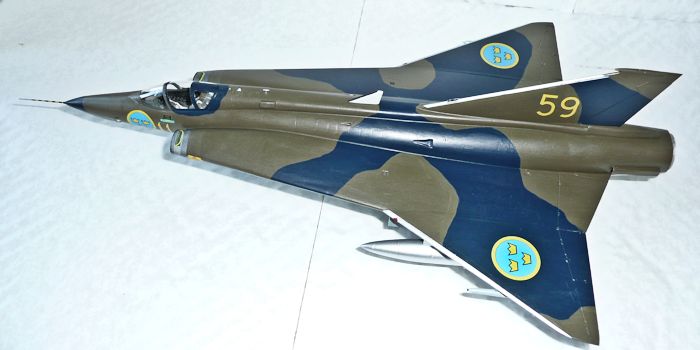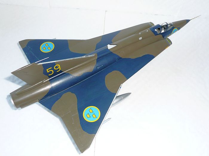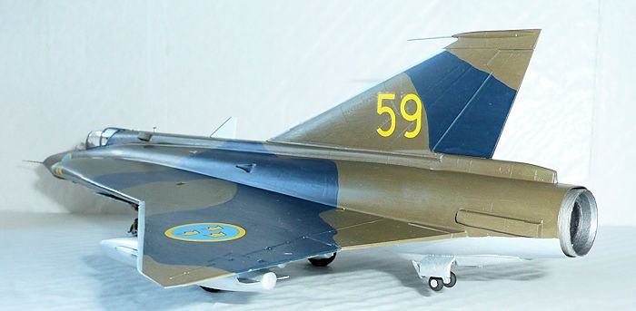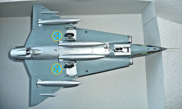 After the model had got the Humbrol Matt Cote (and oddly enough the steel color on the intakes behaved this time without being dissolved) the remaining details were painted then glued in place and as if by magic my S35E Draken was finished.