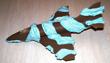 color, in RLM65 from MM Acryl. Then I moved to the top cammo with the red brown