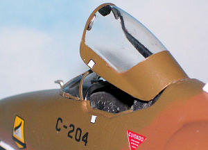 Two pitot tubes were scratch built and painted. I made a new gunsight and glued two mirrors to the canopy (it is a vacuum canopy made by Falcon). Codes are #53 for Falcon and True Details 48710 for the mirrors. With this, I glued the canopy in place and the kit was finally finished (or restored!)