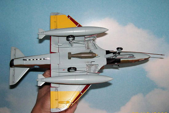 of the landing gear doors. The arrestor hook was painted in bands of white and