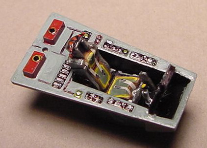 black. I added some masking tape and foil seatbelts to the thing, and prepainted