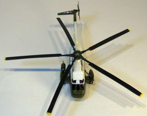 With all the decals in place I then covered the entire helicopter, main rotor blades and tail rotor blades with Future to “seal” the decals in. When dry, I then sprayed the main rotor blades and tail rotor blades with Testors Dullcoat from a can to give them the required flat finish.