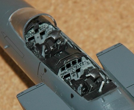 obviously corresponding to an F-15D. The cockpit side consoles include fine