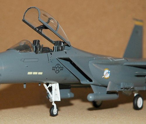 Surprisingly as it may sound, I really enjoyed building this kit. It may not be as accurate as the Revell version, but since I haven’t built that kit, I cannot say for sure how accurate it is, at least compared to the Academy one. Certainly, the Academy kit has some errors. The most important one, according to my opinion, is the wrong type of CFTs with their lack of the third pylon and inlets. However, Academy offers a canopy with the right shape (but with a seam), and better-shaped exhaust nozzles (once you overcome the difficulty of assembling them) than the Revell ones. I also noticed that most Revell models of F-15E have a slight nose-up attitude, perhaps the result of a slightly longer nose gear; the Academy F-15E looks just right instead. Other minor problems were mentioned above and need to be dealt with to improve the accuracy of the kit. Unless it was a problem only with my kit, you will probably need to buy aftermarket decals too.