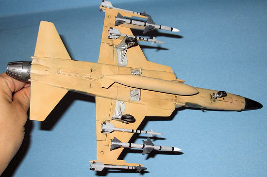 From aerial photos of actual Saudi F-5Es, I discovered to my joy that the undersides of the F-5E were simply tan so I did not have to mask underneath.